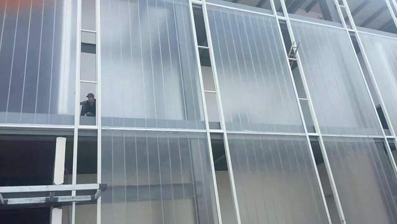 浙江吉田科技公司廠房U型玻璃墻工程,該工程采用超白鋼化330mm寬U型玻璃5500平.