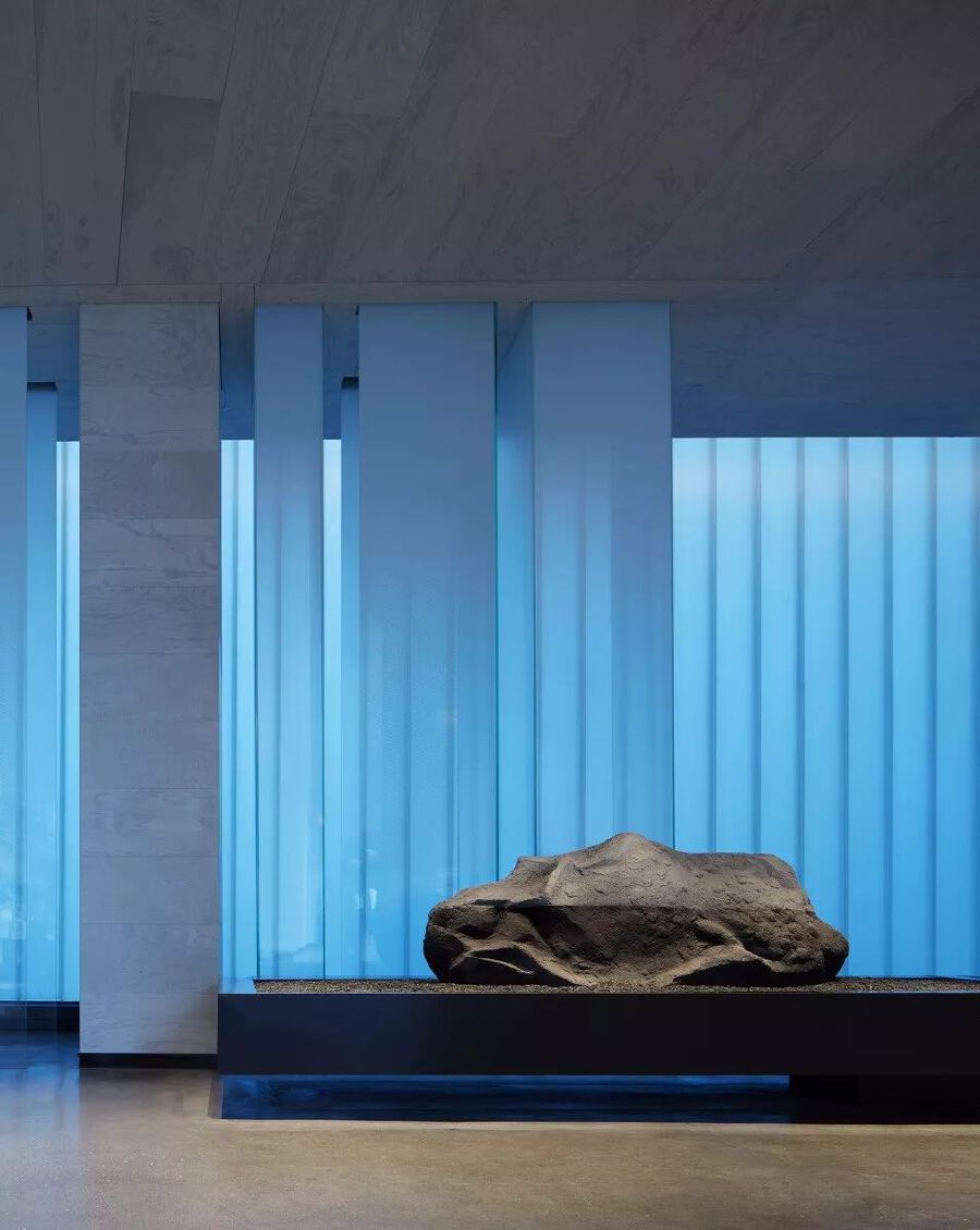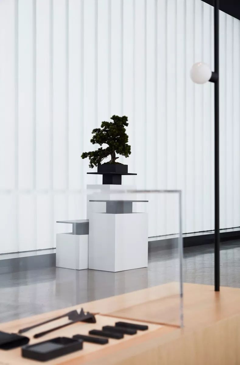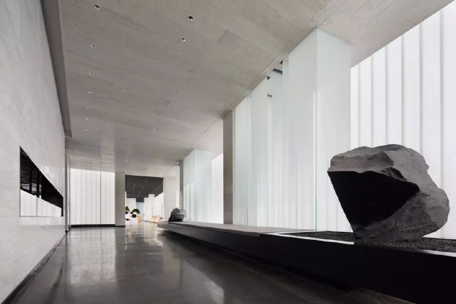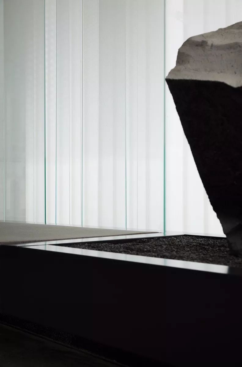 從室內(nèi)空間關(guān)系的層面,白是一個(gè)基礎(chǔ),是規(guī)矩;黑是變化身形、恣意流動(dòng)或瞬爾駐足,不逾矩的姿態(tài)。兩者所呈現(xiàn)的形式,于音樂的層面,構(gòu)建出帶有即興撩弦,音能動(dòng)人的意味。中國(guó)的雅樂,琴為大音,大音希聲。希聲者,正在有無(wú)之間。富象征意義的黑白通過大幅度玻璃與戶外的環(huán)境達(dá)成銜接,視覺引導(dǎo)心境,在“虛實(shí)”、“有無(wú)”間輕盈穿越。