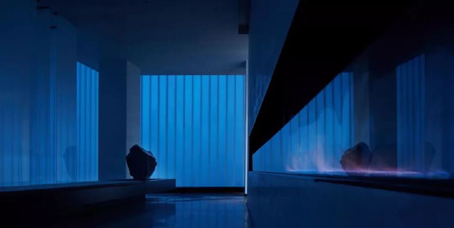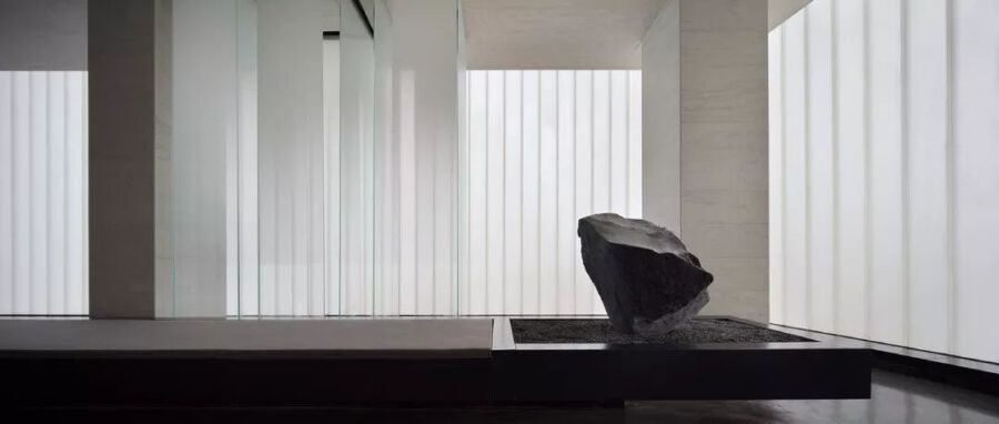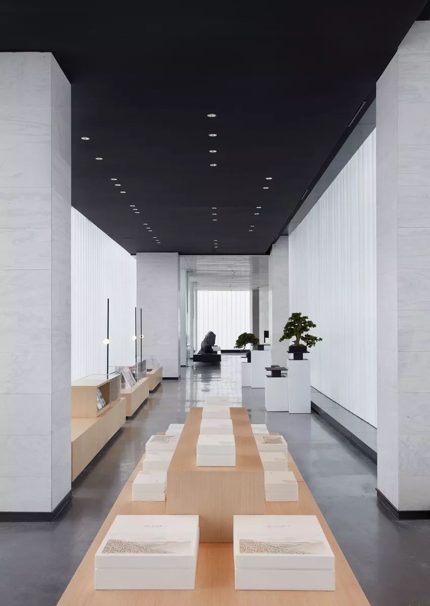 空間的大體色調(diào)最終確定為黑白。不過與司空見慣,以黑白顯“酷”的思路毫無(wú)沾染。而是意念上取“天地乾坤”,表現(xiàn)層面取“白紙濡墨”。因此在呈現(xiàn)的姿態(tài)上,并不作富視覺沖擊力的切割,不刺激眼球,而是將空間呈山水手卷般舒緩的逐次展開。