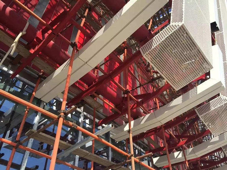 一般多采用穿孔鋁板,但是這種材料造價(jià)較高。我們選擇了更加環(huán)保的水泥纖維板,造價(jià)不僅大大降低,而且其更加結(jié)實(shí)、平整?!?/span>