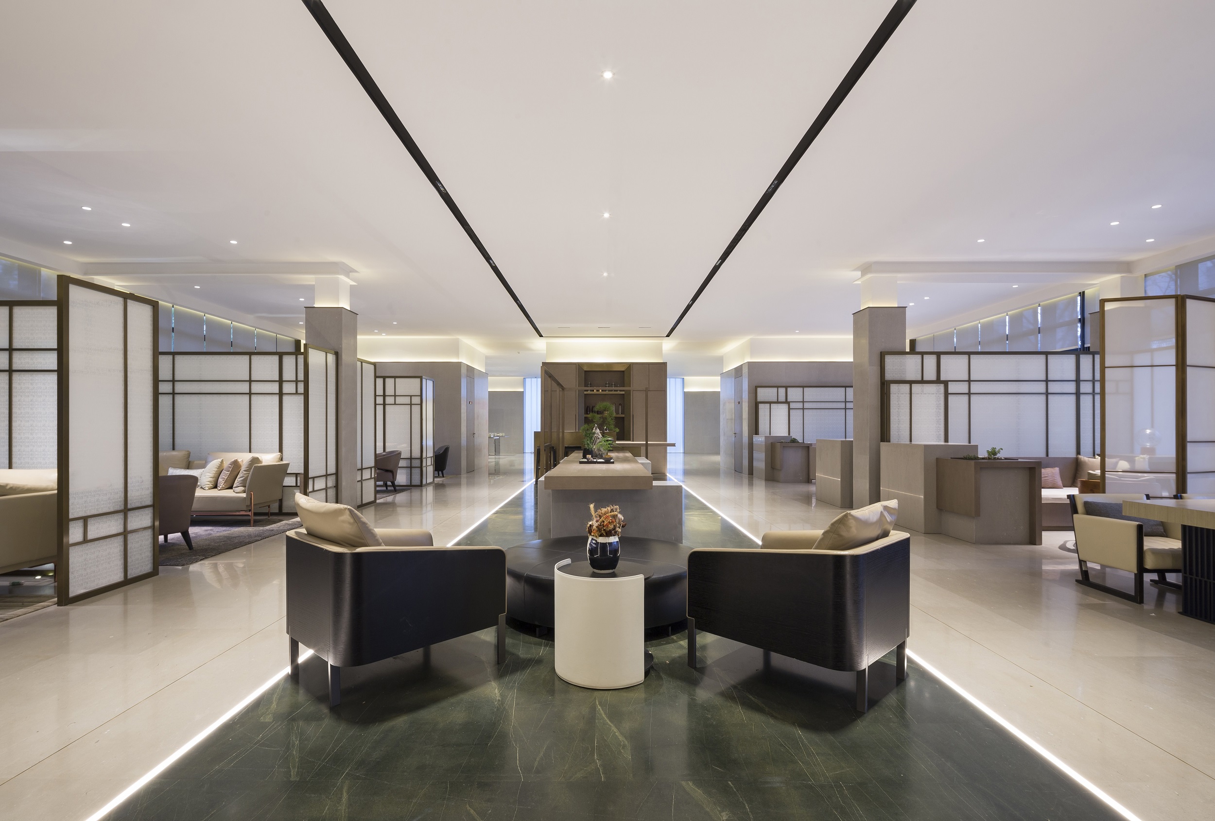 在一個(gè)大道至簡(jiǎn)的空間內(nèi),利用線面之間的交織重疊,它可以是燈帶、燈的形態(tài)等,這些簡(jiǎn)約的線型演繹,將視覺(jué)延伸到立體的空間中。
